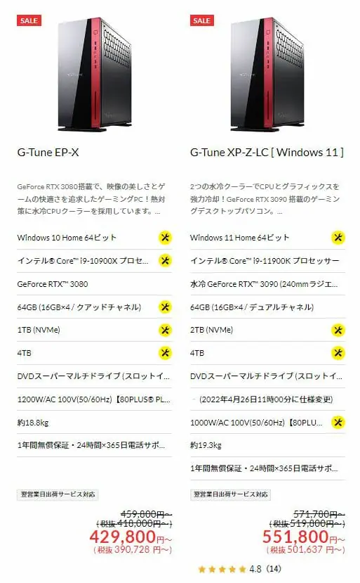 超ハイスペックゲーミングPCから、ミドル級のゲーミングPC、そしてノート型からリモートワークに適した格安なビジネスモデルまで、幅広い製品がラインナップに並んでいます。
