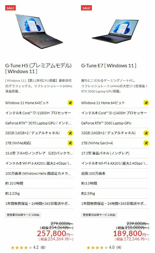 また場所を選ばずに本格的なゲーミングを楽しめるノート型のゲーミングPCもセール対象となっています。