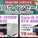 第13世代Core i7+RTX4070搭載のモデルが税込21万円台!フロンティア『ハロウィンセール』開催