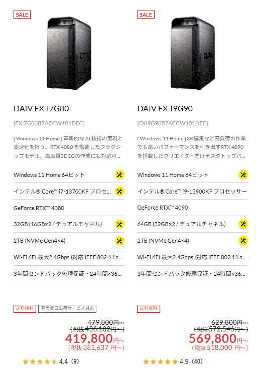 ▼『RTX4090』や『RTX4080』を搭載した最上級ハイエンドモデルには、なんと税込60,000円OFFもの割引が適用!