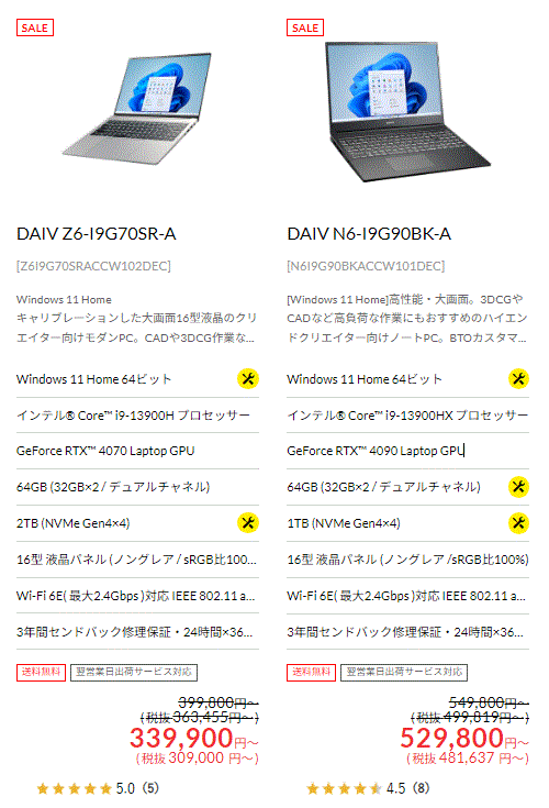 ▼『RTX4090』搭載のラップトップモデルが登場!
