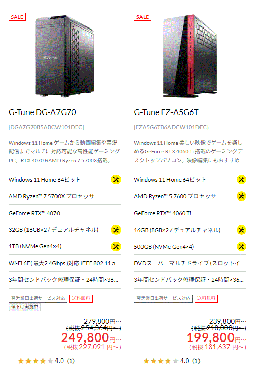 ▼『RTX 4070Ti』や『RTX 4060Ti』搭載のミドルハイ級モデルもさらにお得な価格に!