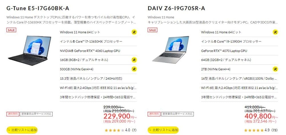 ▼デスクトップ型だけでなく、ラップトップ型のゲーミングPCもお得な価格で購入可能!