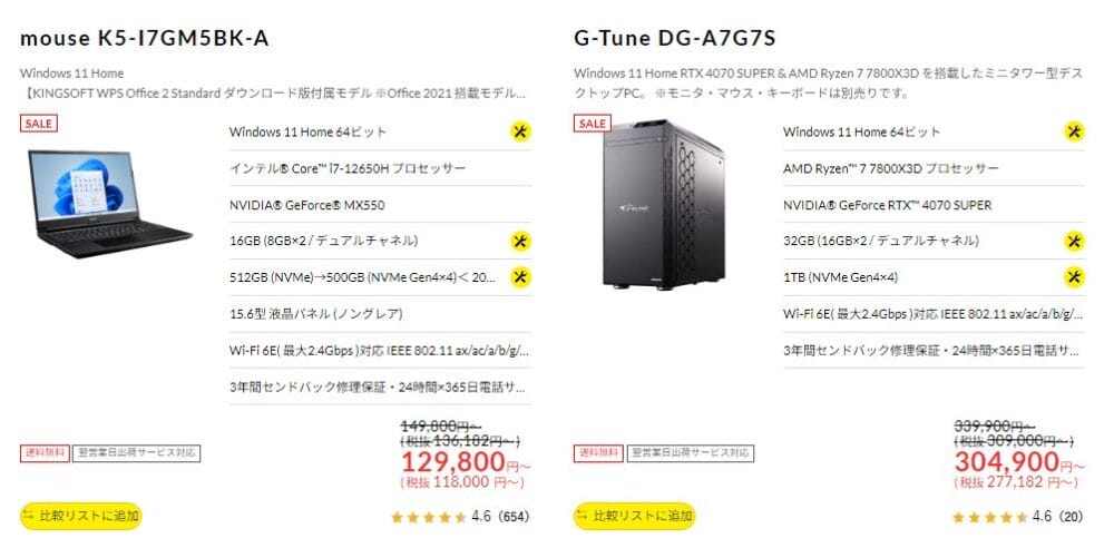 ▼『RTX4060』など搭載したエントリーモデルも、さらにお得なセール価格で販売!