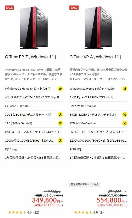 超ハイスペックゲーミングPCから、ミドル級のゲーミングPC、そしてノート型からリモートワークに適した格安なビジネスモデルまで、幅広い製品がラインナップに並んでいます。