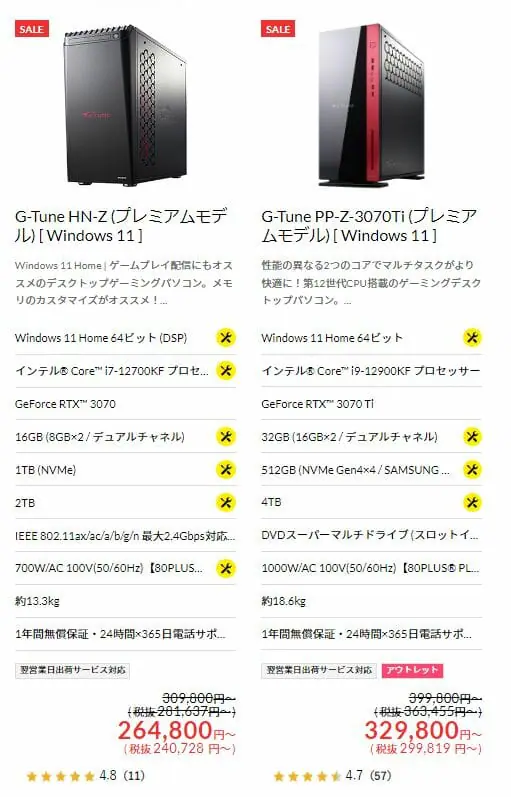 オススメ③:G-Tune PP-Z-3070Ti [ Windows 11 ]