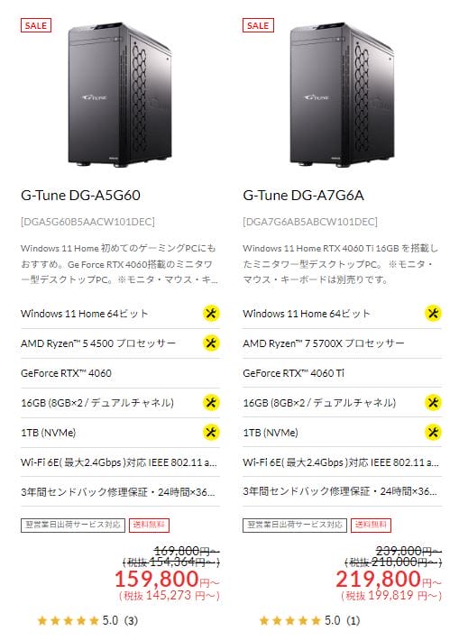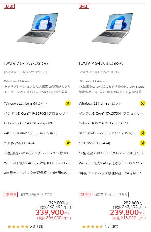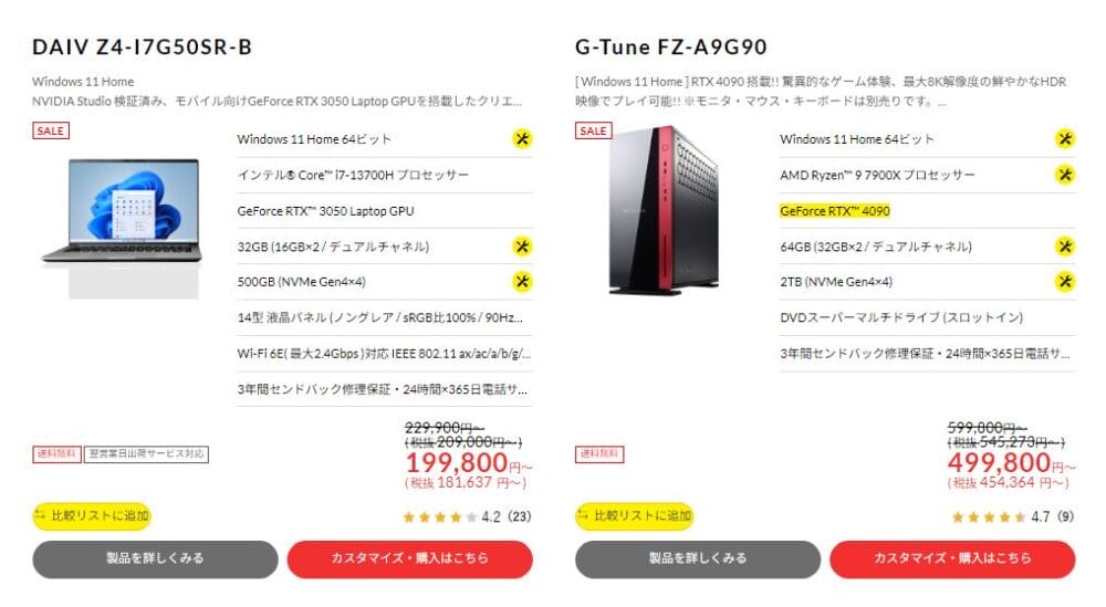 そしてデスクトップモデルだけでなく、ゲーミングノートPCも非常にお得な価格で用意されています。