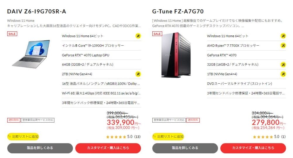 中には 最大で税込100,000円もの割引 が適用されるモデルも販売されており、ゲーミングPCやクリエイティブ用PCを購入するには絶好の機会となっています。