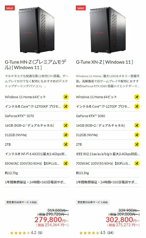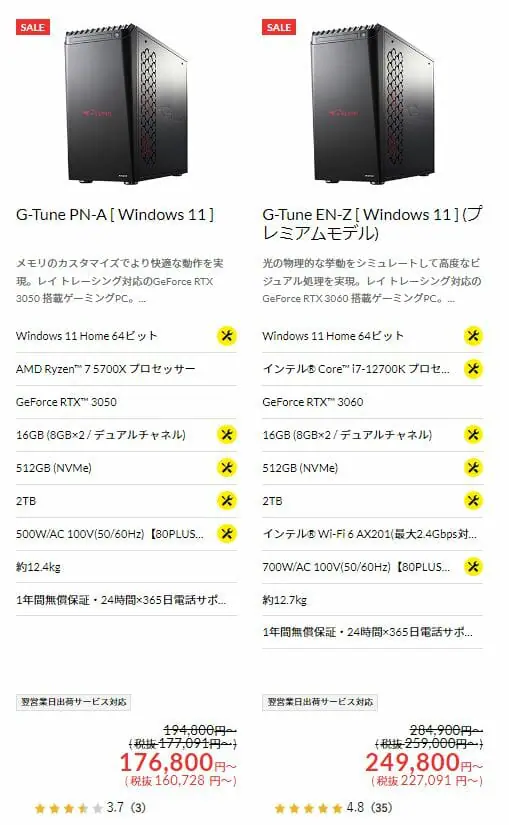 超ハイスペックゲーミングPCから、ミドル級のゲーミングPC、そしてノート型からリモートワークに適した格安なビジネスモデルまで、幅広い製品がラインナップに並んでいます。