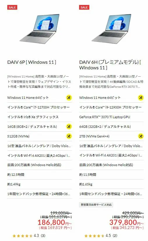 ▼また、デスクトップ型だけでなく、ノート型の高性能ゲーミングPCもセール対象となっています。