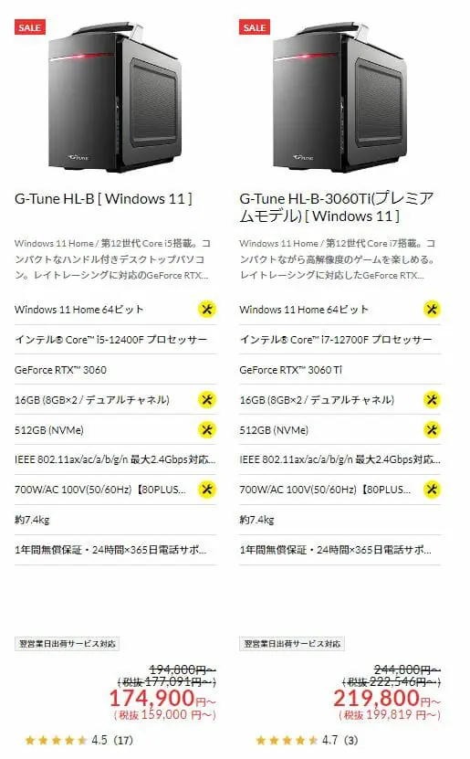 オススメ③:G-Tune HL-B-3060Ti(プレミアムモデル) [ Windows 11 ]