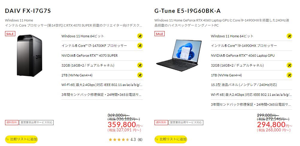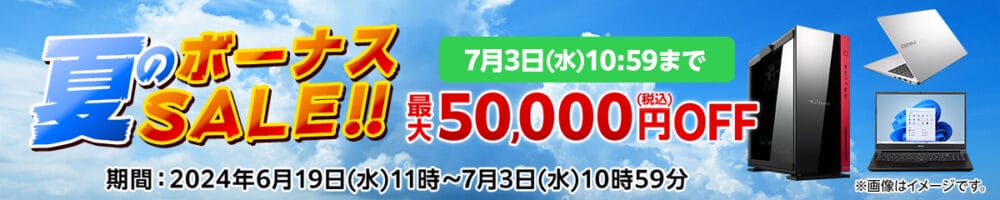中には 最大で税込50,000円もの割引 が適用されるモデルも販売されており、ゲーミングPCやクリエイティブ用PCを購入するには絶好の機会となっています。