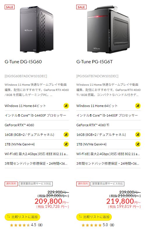 ▼『RTX4060Ti』や『RTX4060』搭載のエントリーモデルも、さらにお得なセール価格で販売!