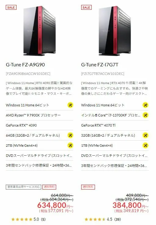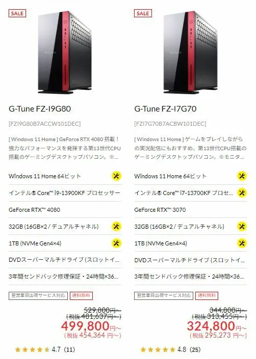 このように、AAA級のオンラインタイトルでも快適に遊ぶことが出来るハイエンドモデルを、非常にお得な価格で購入することが出来ます!