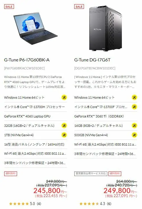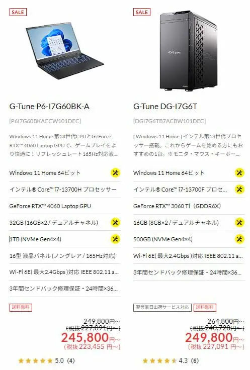 ▼そして『RTX4060』搭載のノート型ゲーミングPCもセールラインナップに並んでいます。