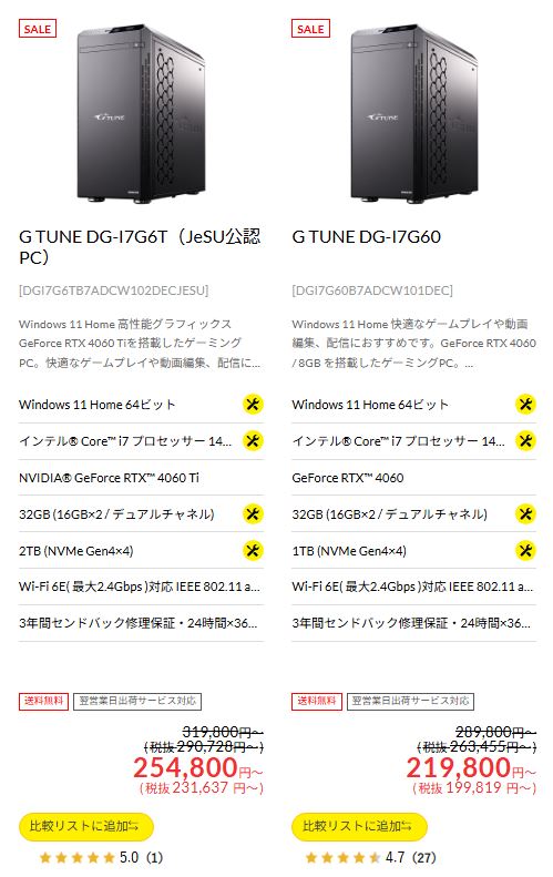 ▼「RTX4060」や「RTX4060Ti」搭載のエントリーモデルもお得な価格で用意。