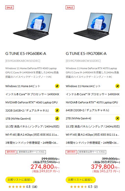 ▼デスクトップ型だけでなく、ラップトップ型のゲーミングPCもお得な価格で購入可能!