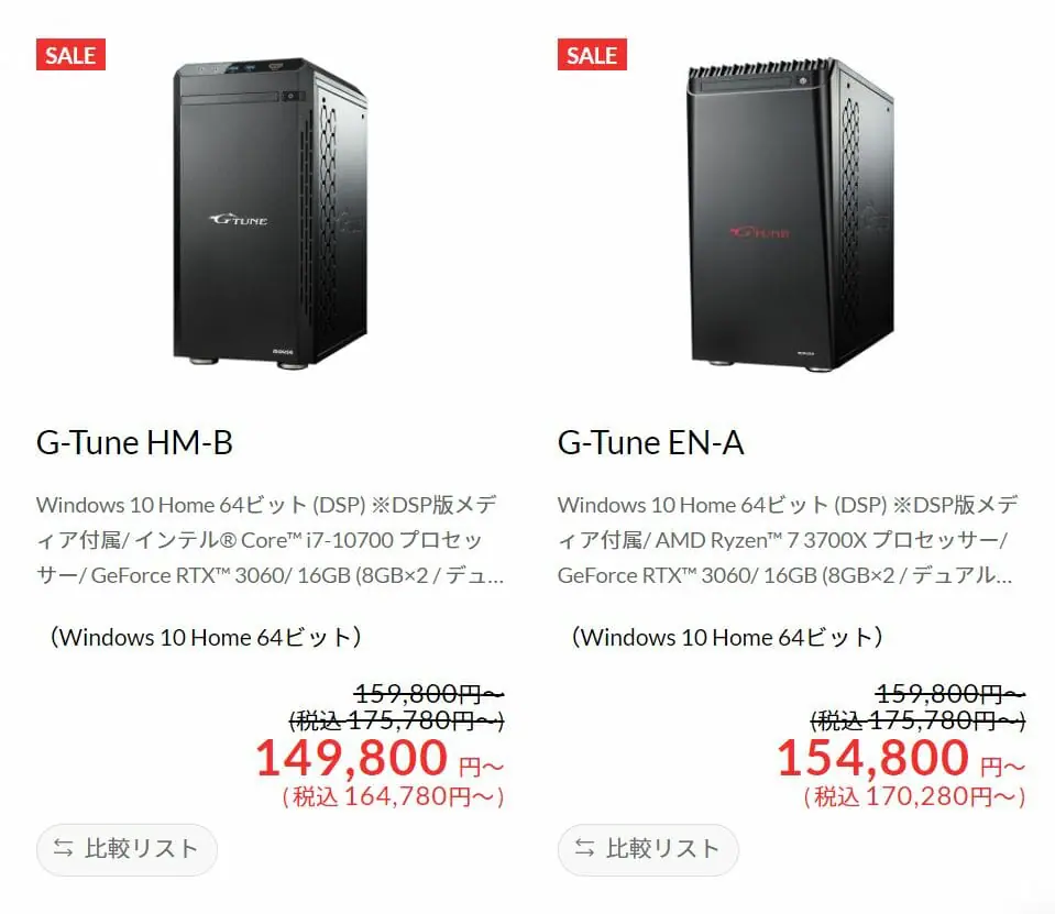 ▼ハイエンドグラボであるRTX3060を搭載したモデルが、税込16~17万円ほどで購入可能!