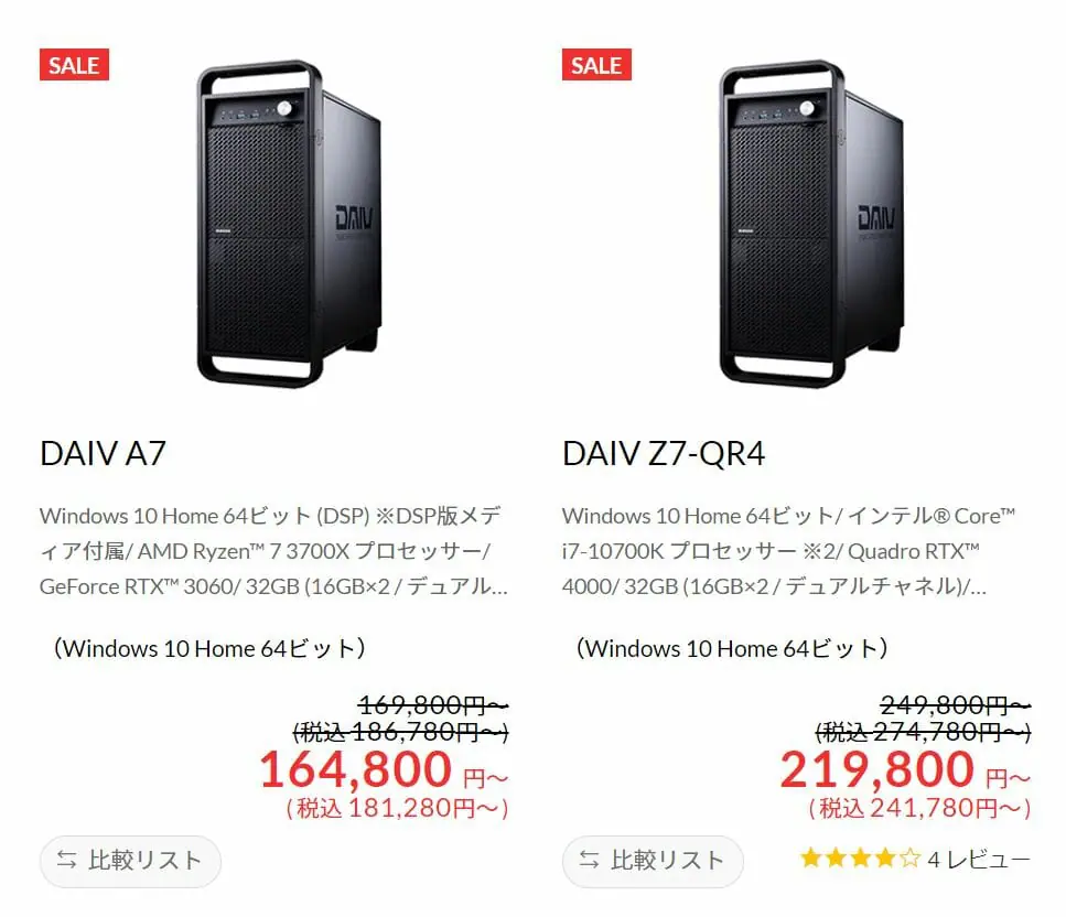 ▼RTXクアドロを搭載したクリエイター向けPCも大幅割引の対象に。