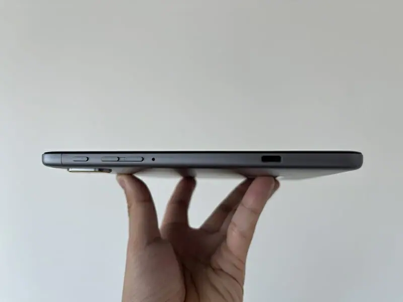 ▼左側面には電源ボタン、音量調節ボタン、Type-Cポートが用意。