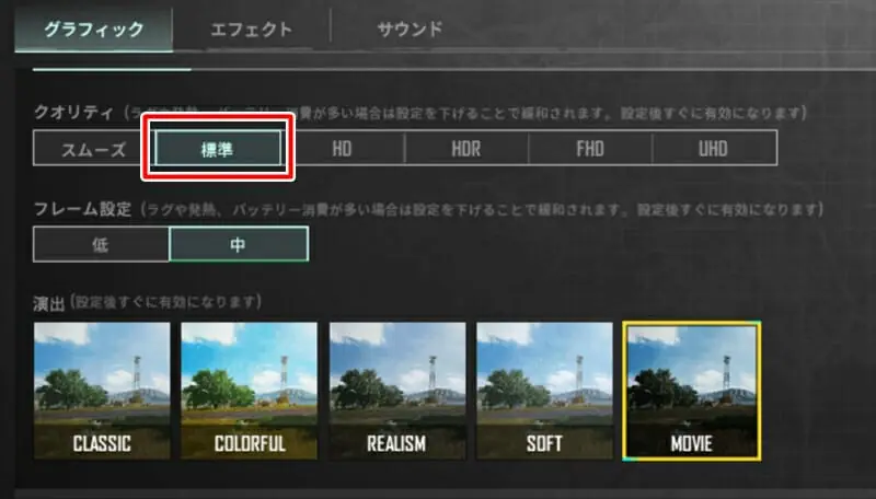 まずグラフィッククオリティに関しては『標準』までしか選択できなかった。