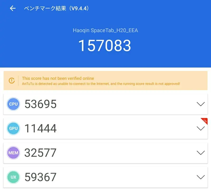 本機について、スマホ・タブレット端末の性能を測ることのできる『AnTuTuベンチマークテスト』を実施してみた。