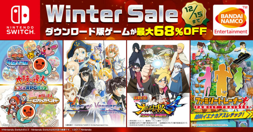 本セールでは、大人気RPGである「テイルズ オブ ヴェスペリア REMASTER」や、リズムゲームの傑作「太鼓の達人」などが最大68%OFFされます。