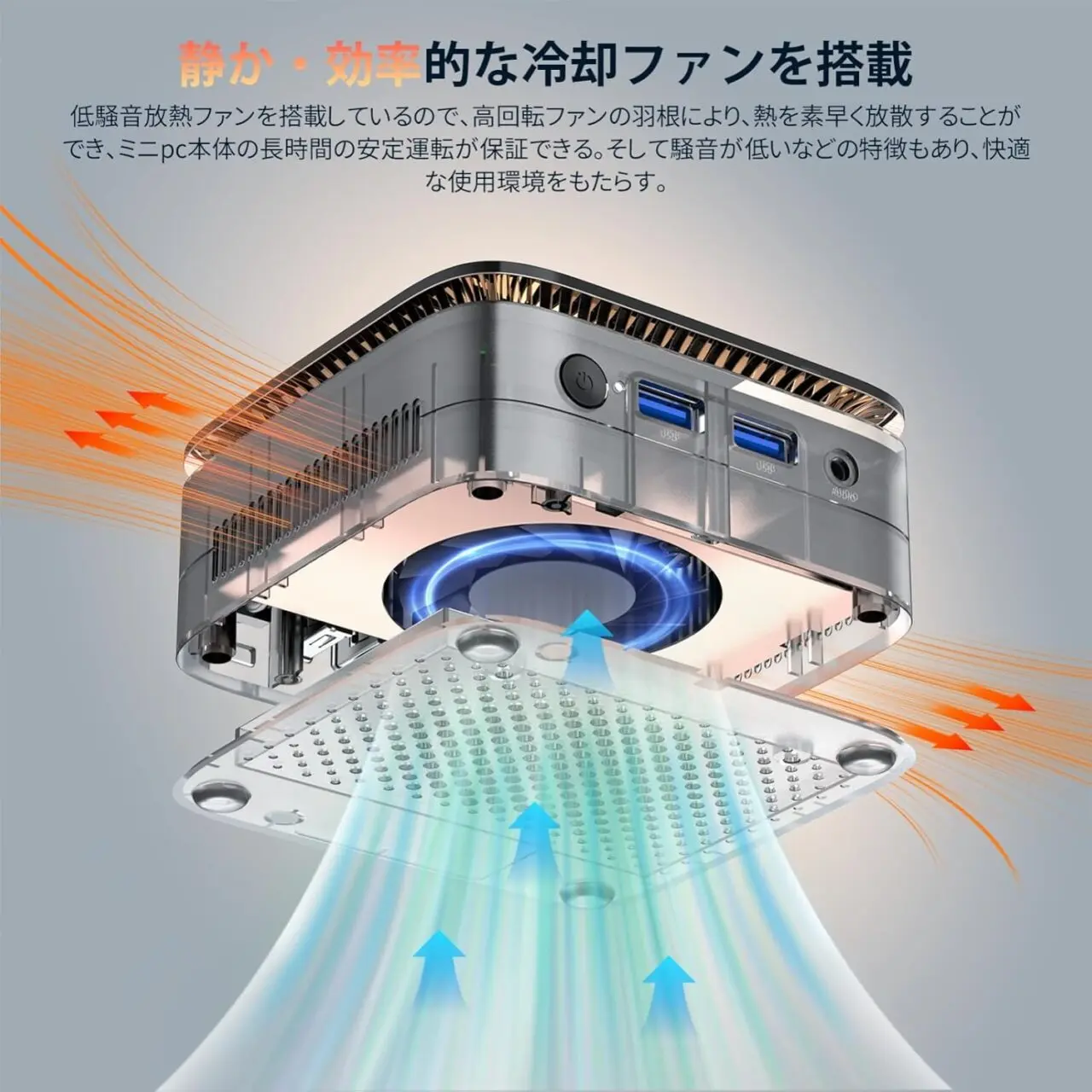 そして高効率冷却ファンを内蔵しており、長時間の高負荷使用時でも内部温度の過度な上昇を防ぐことが可能。静音性を実現しつつ、パフォーマンスを一定以上に保つことが可能です。