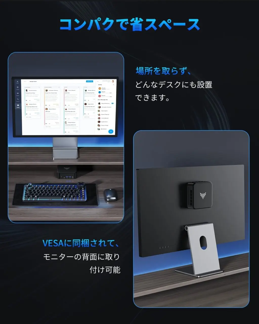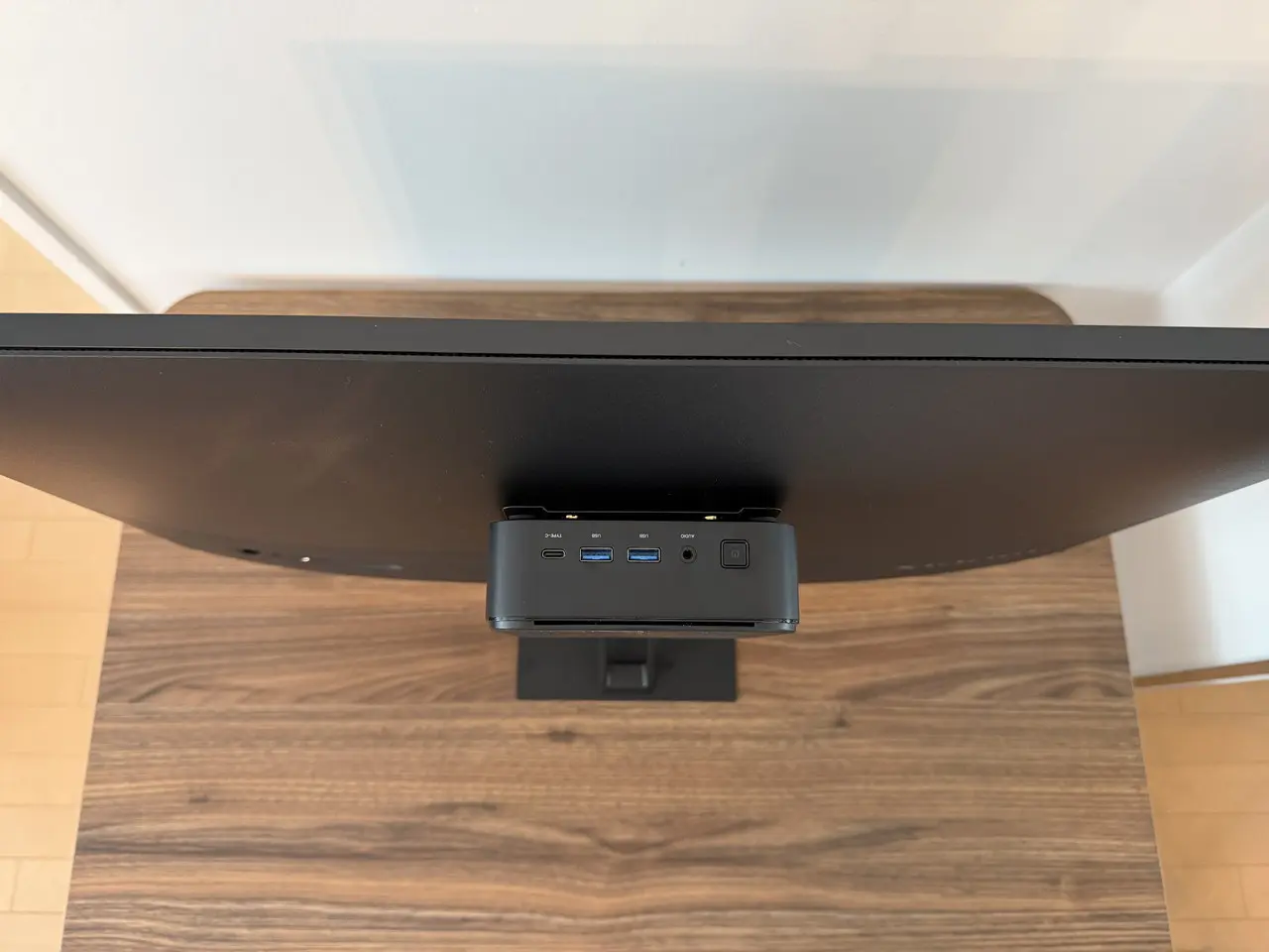 前述した通り、パッケージに付属する壁掛けブラケットを使用することで、VESA規格に対応したモニター裏への取り付けが可能。さらなる省スペース化を実現できる。