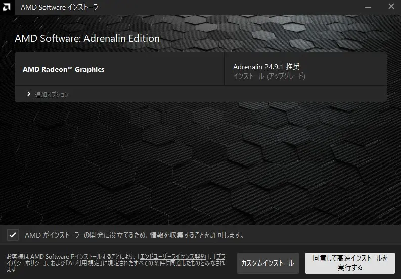 なお、初起動時点でAMD Radeon Graphicsはインストールされていないため、必要に応じて公式サイトよりインストーラをダウンロードしておこう。