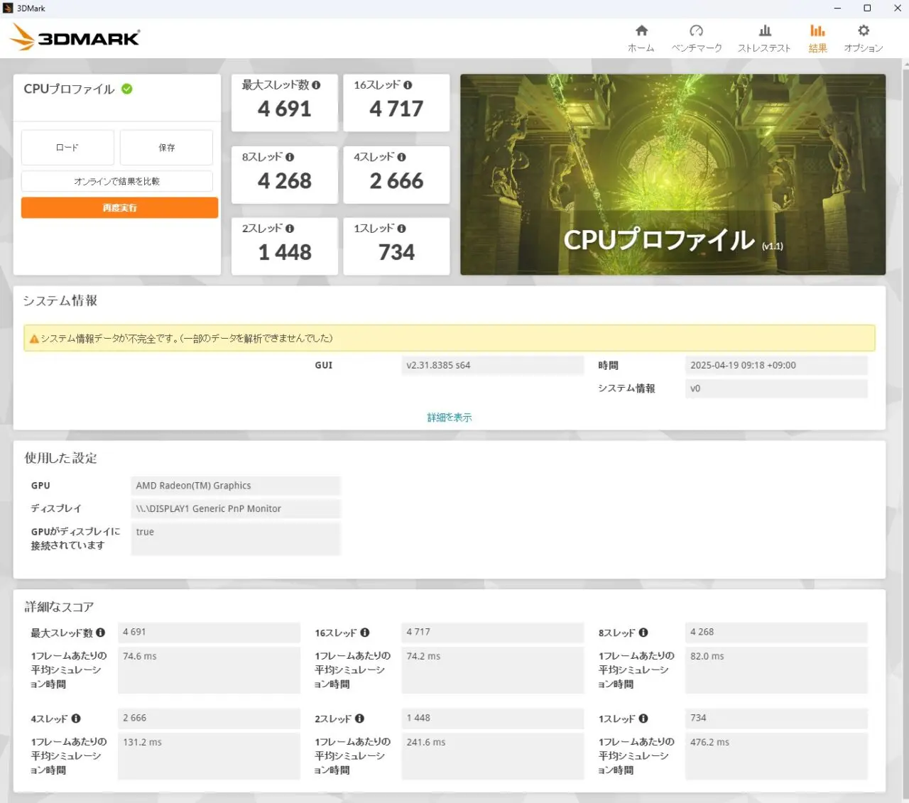 ウェブサイト閲覧、Office作業、動画視聴などの軽作業には十分対応できるスコア結果と言える。画像編集や軽い動画書き出しにも対応可能。シングル性能もまずまずで、軽めのゲームや一般用途でストレスを感じることは少ないだろう。