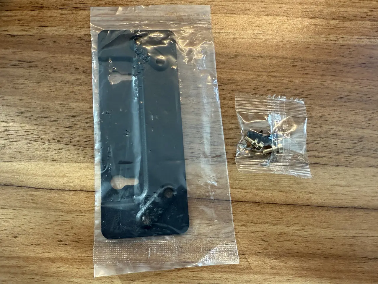 壁掛けブラケット&ネジが付属しており、モニター裏に設置することで、さらなる省スペース化を実現できる。