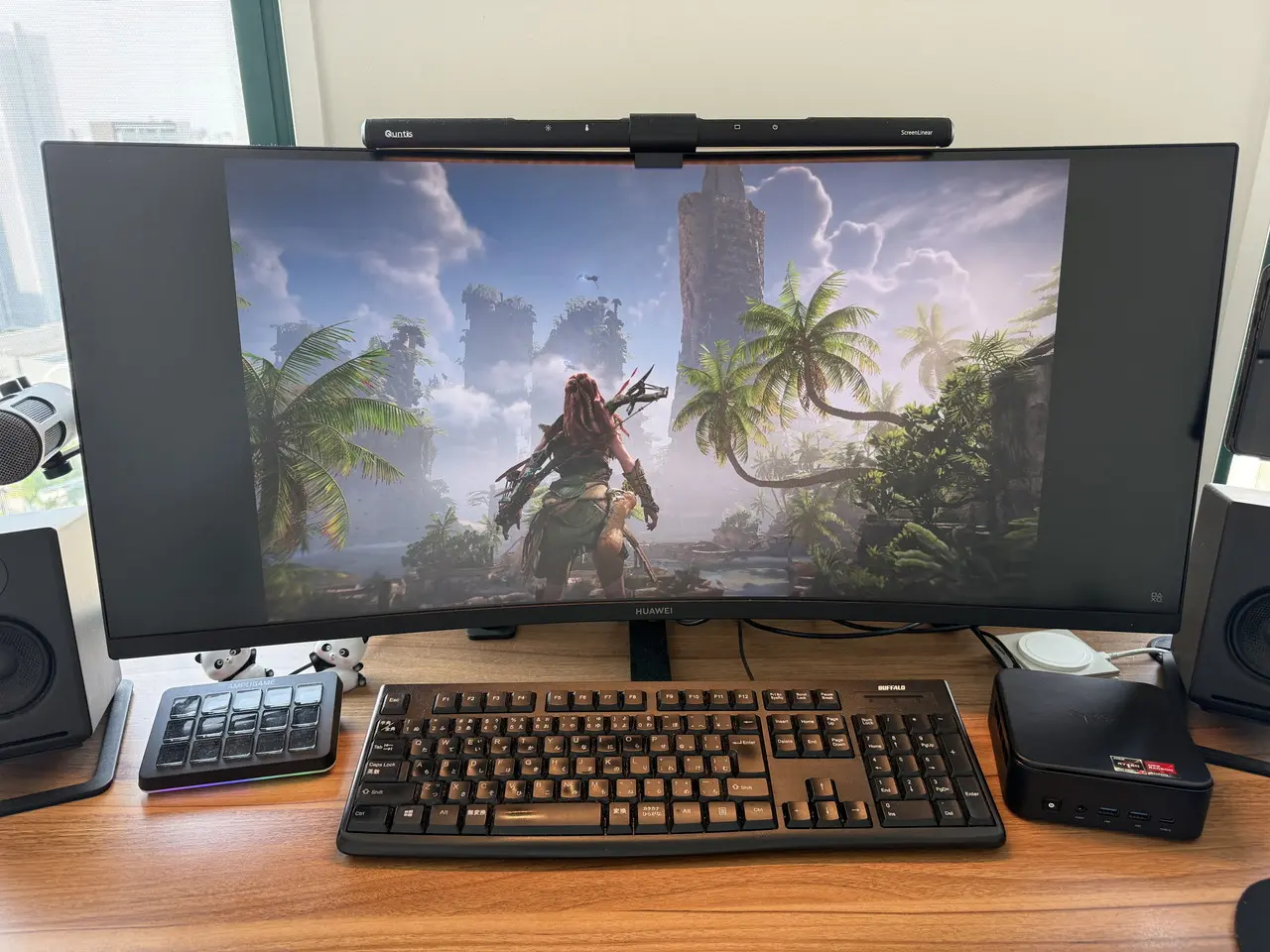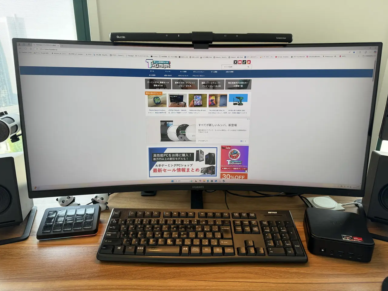 今回のレビュー時には3440×1440解像度のウルトラワイドモニターに接続して利用した。