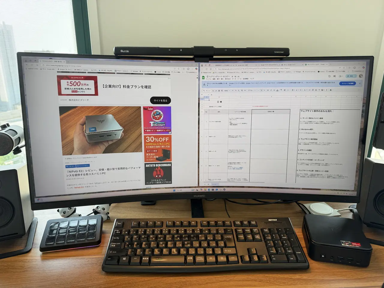 ウルトラワイドモニターでスムーズなウェブブラウジングが可能。ページ読み込みからスクロールまでいたって快適だ。