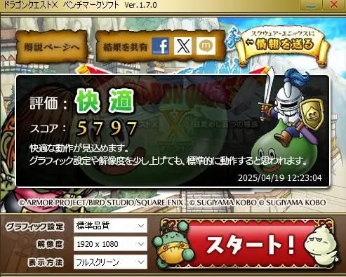 フルHD解像度における標準品質設定で実行したが、スコアは5,797点で "快適" という結果が得られた。