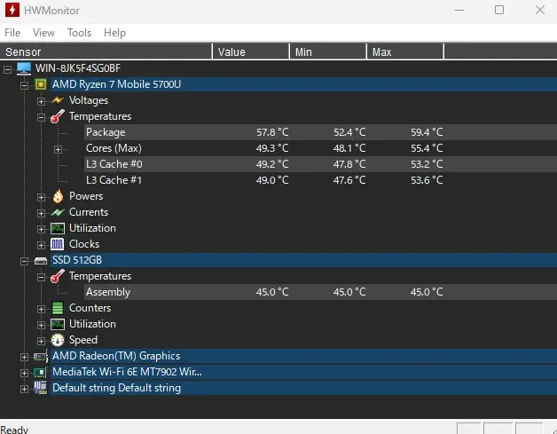 ▼5時間ほど高負荷状態でPCを稼働させ続けた際の内部温度(CPUID HWMonitorによる測定値)。