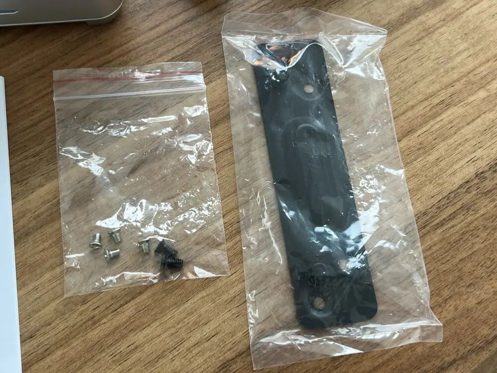 ▼付属のネジと金具を利用することで、モニター裏への取り付けが可能だ。