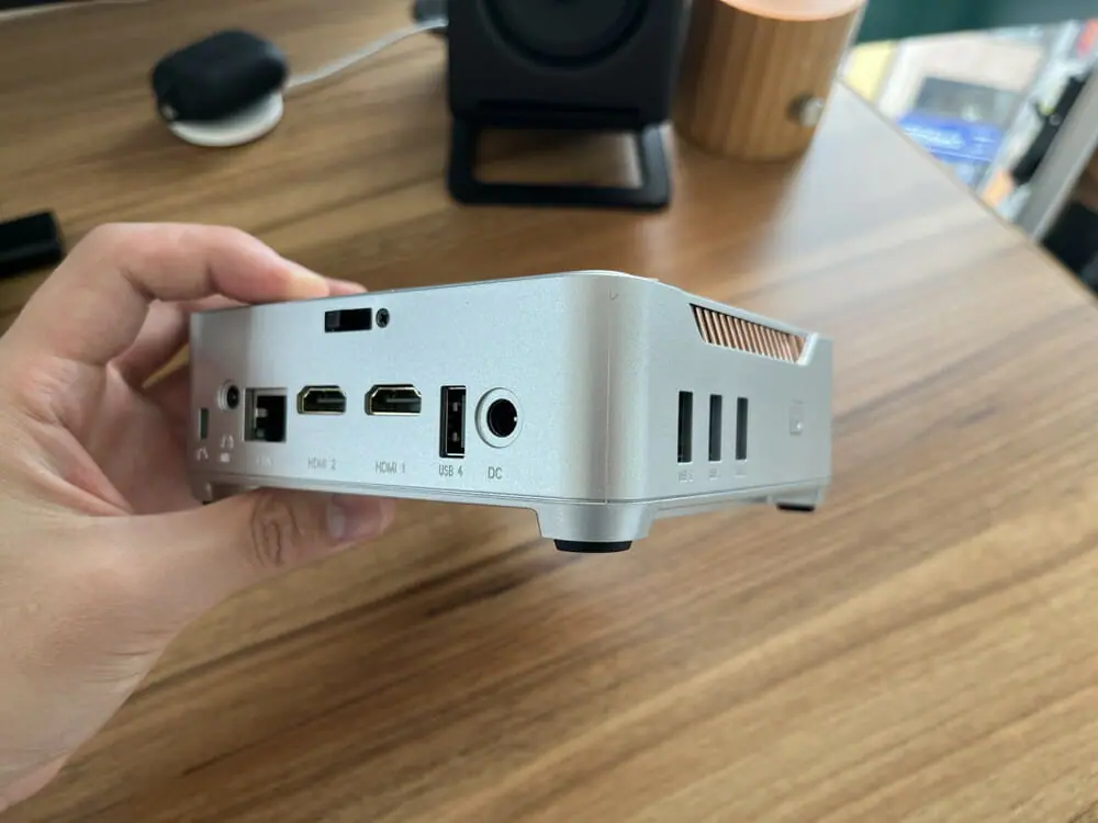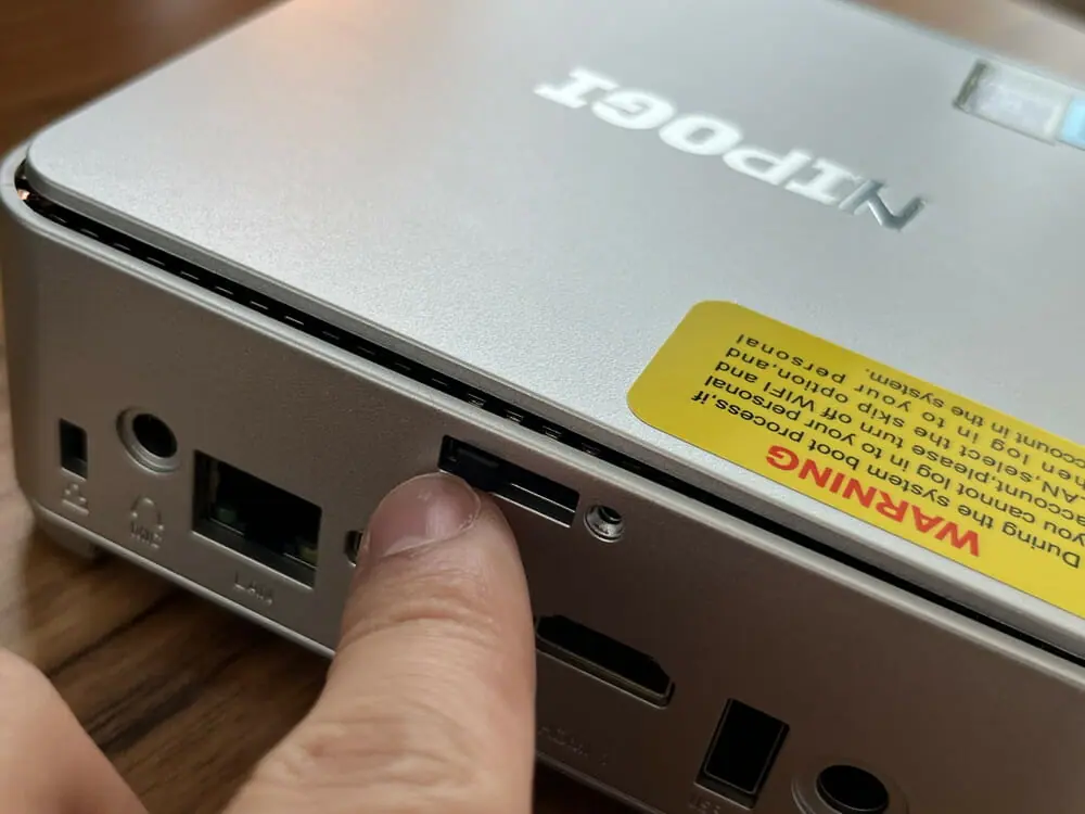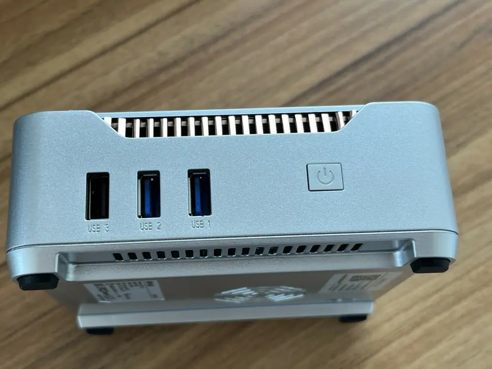 一般的なミニPCは電源ボタンの反対側面に主要ポート類が搭載されるが、本製品は真横に位置するという変わった配置になっている。