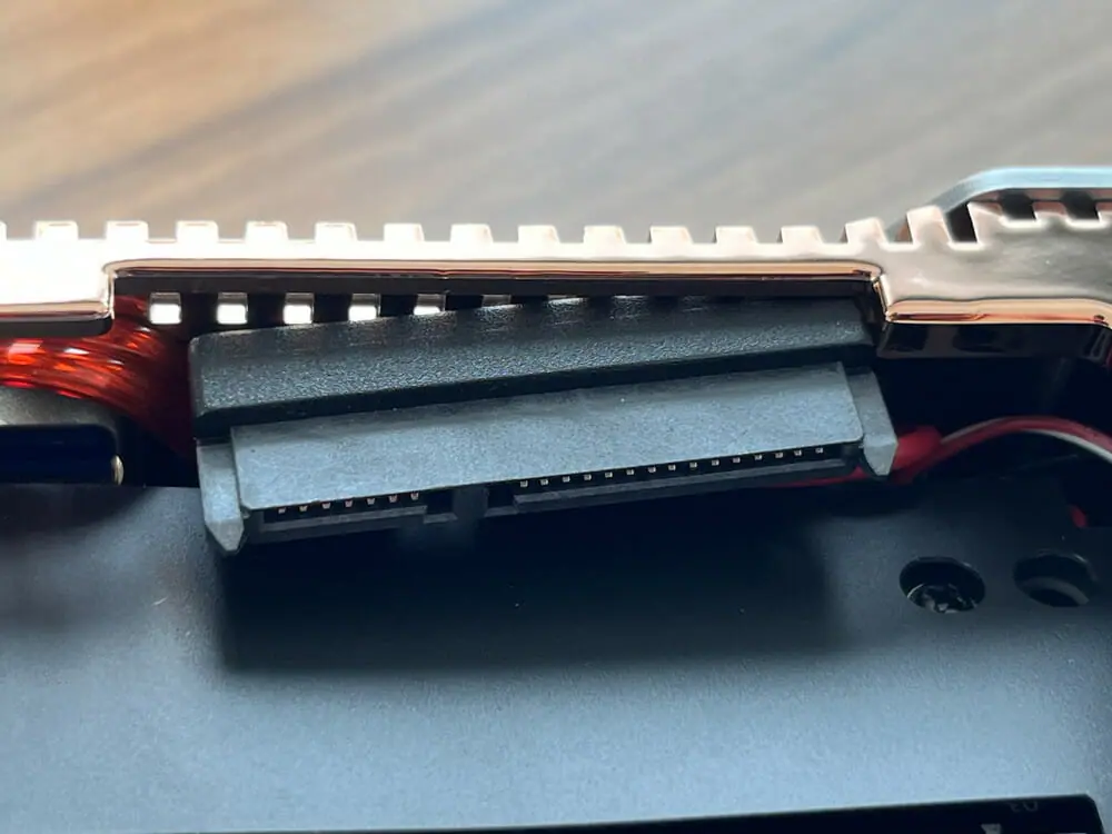 ▼SATAコネクタが用意されており、最大2TBまでの2.5インチHDDを増設できるスペースも用意。