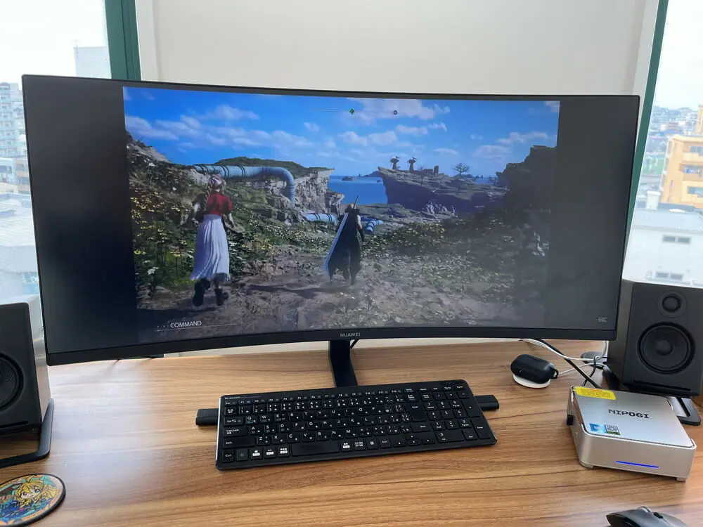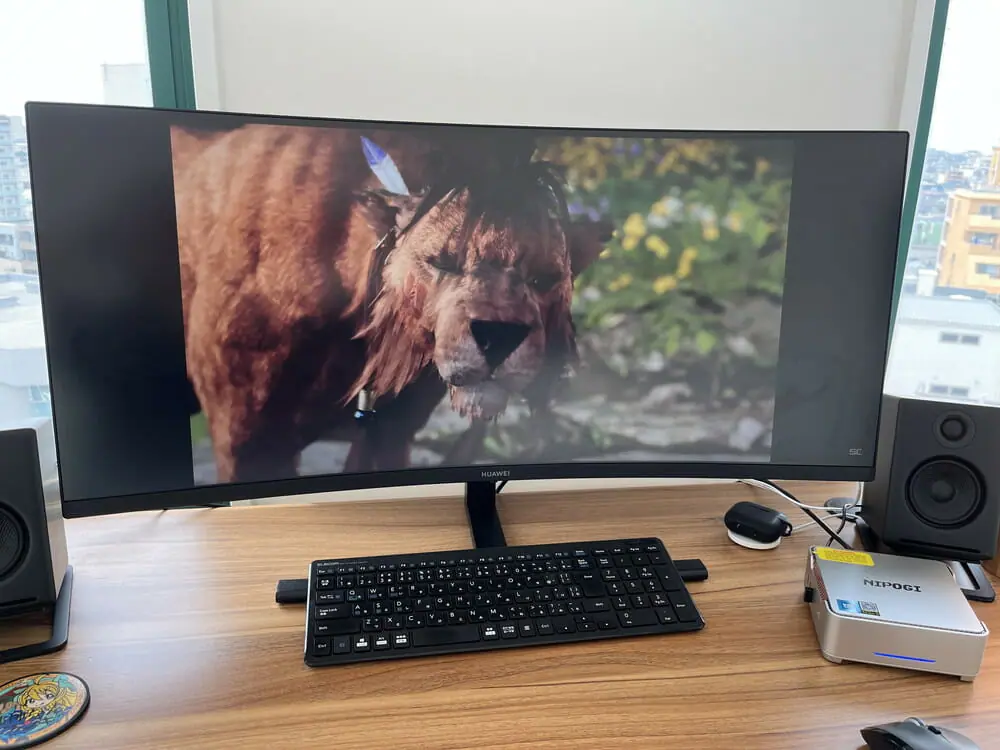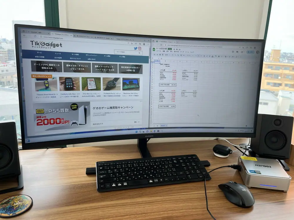 今回のレビュー時にはウルトラワイドモニター(3440×1440:UWQHD解像度)に接続して利用した。