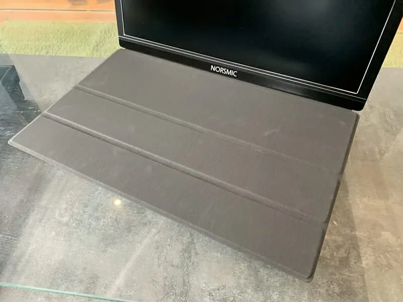 そしてスマートカバー下部には2つの溝が用意されており、モバイルモニターを2段階の角度で設置することが出来る。