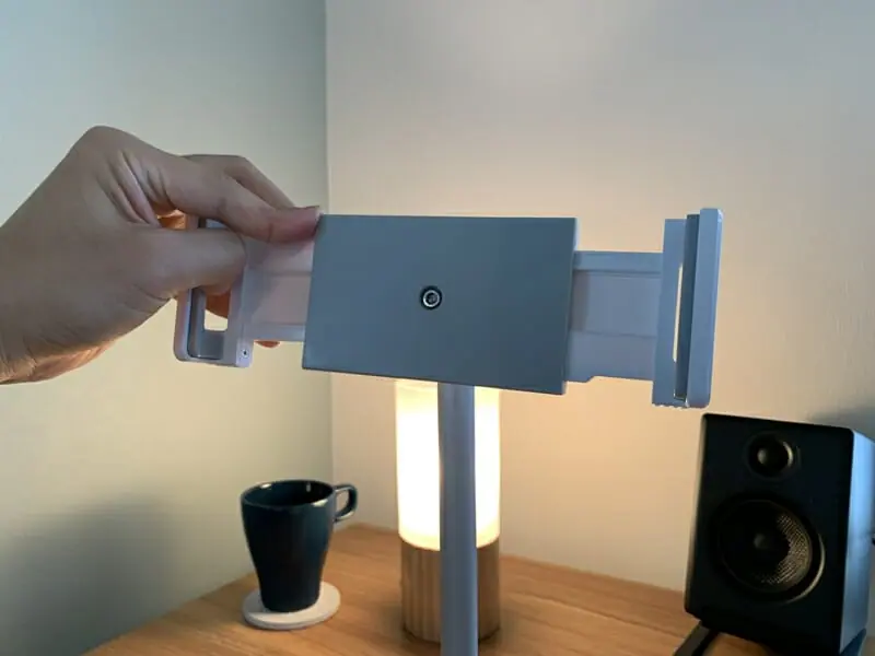 ▼取り付け部はバネ式で固定するようになっており、モバイルモニターだけでなくタブレットやスマホなどのデバイスも取り付けることが可能だ。