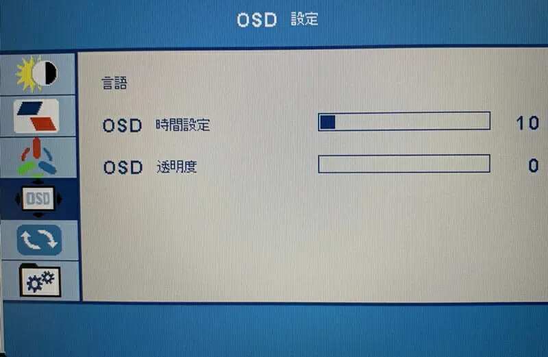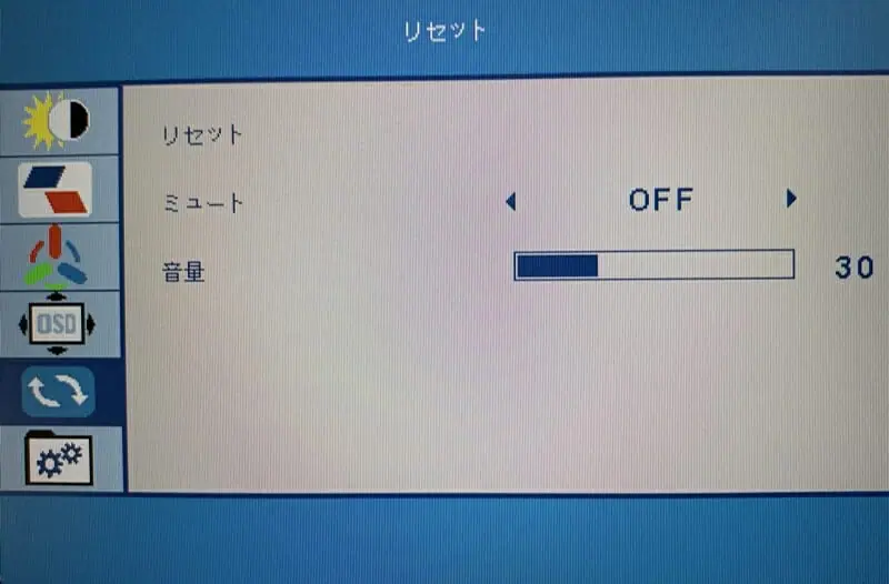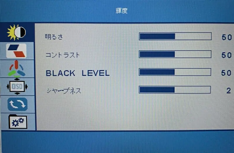 メニュー画面では明るさやコントラストなど、映像に関する一般的なパラメータの調節を行うことが出来る。