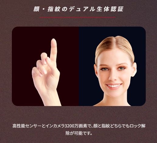 | 認証機能 | 顔認証、指紋認証 |