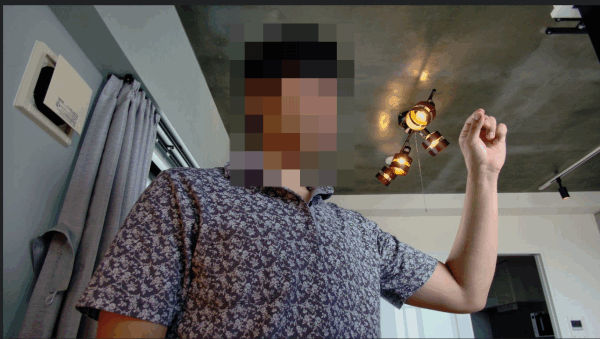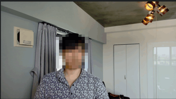 そしてAI機能のおかげで、ウェブカメラの周囲をグルグルと移動しても、自動で私の位置が認識されてオートフォーカス・強調表示される。