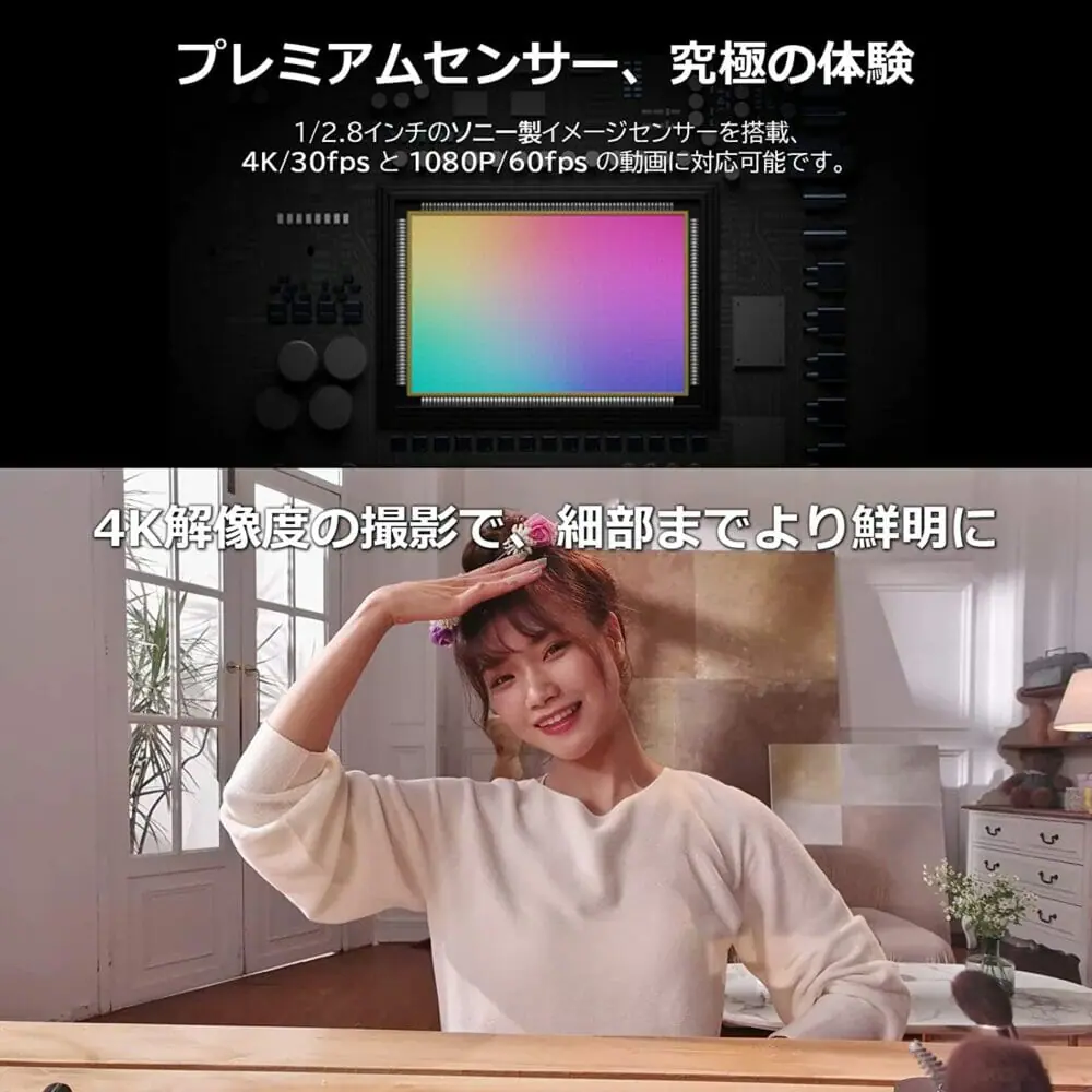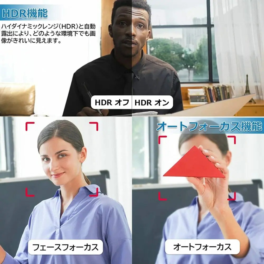 | 特徴 | 自動追尾 ・ハンドジェスチャー機能, オートフォーカス・オートフレーミング, HDR対応・4K UHD対応 |