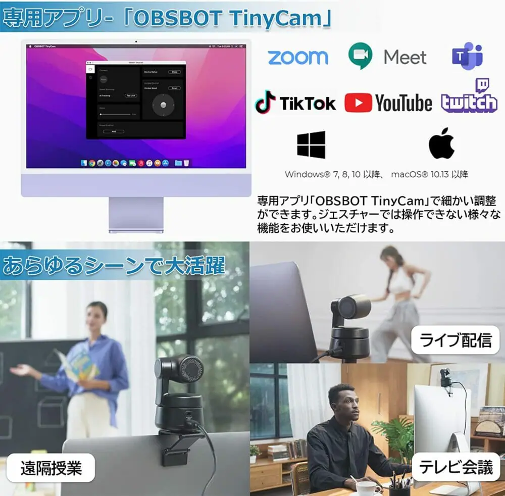 | 専用アプリ | OBSBOT TinyCam |