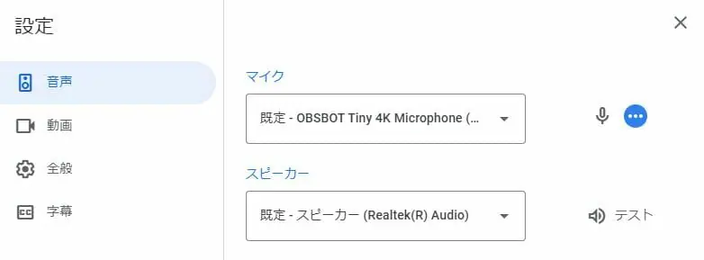 ▼マイクも『OBSBOT Tiny 4K』内蔵のマイク2基を使用して通話した。