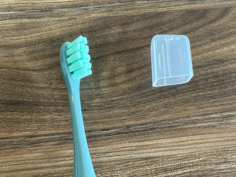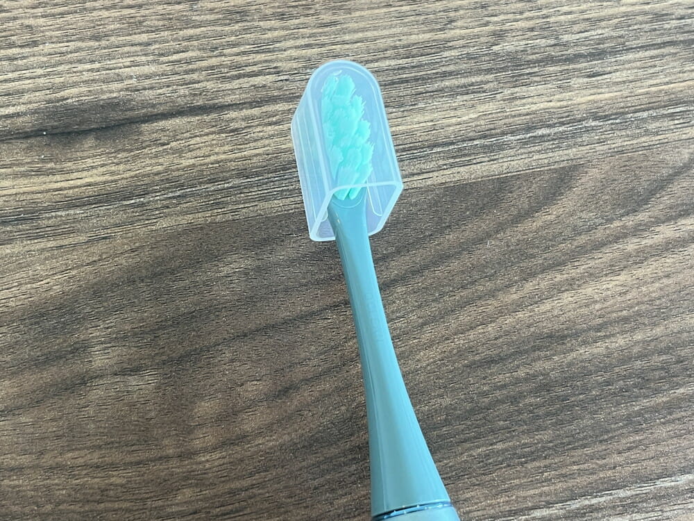 ▼開封時点で、先端にはキャップとブラシヘッドが装着されている。