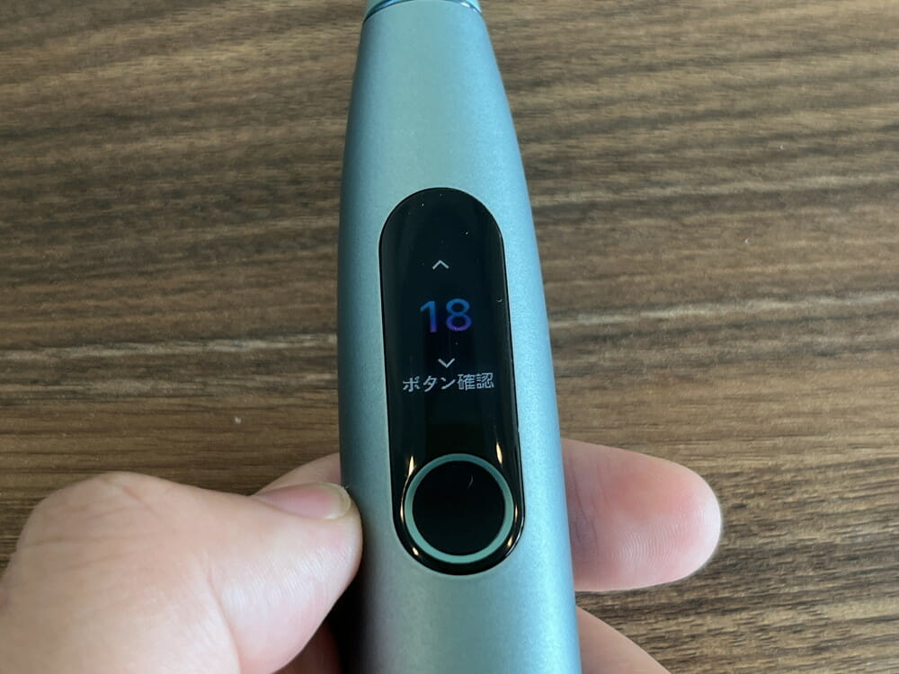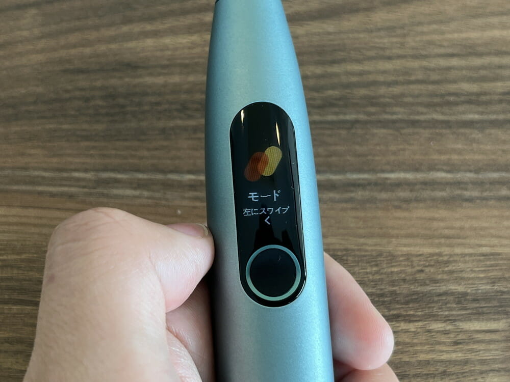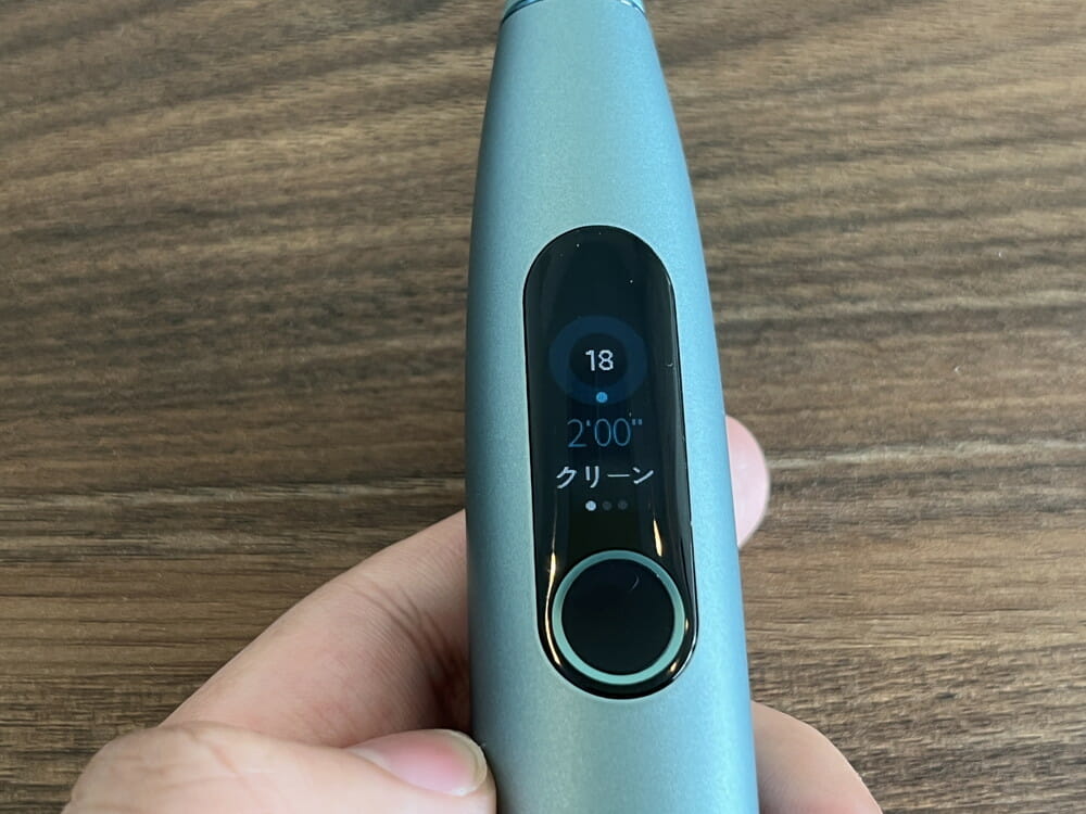 電動歯ブラシに搭載されたスクリーンをタッチ操作することで、振動の強さを変更したり、クリーニングモードを変更することが可能だ。